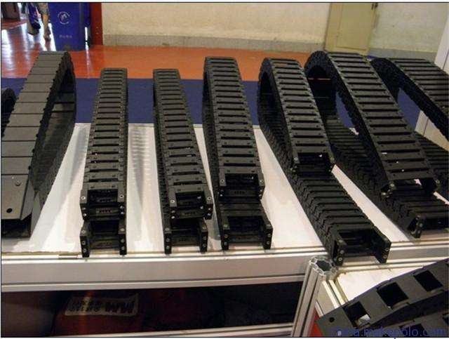 1、出產易燃易爆品也有運用,在這種環境下工程拖鏈的抗靜電性就顯得至關重要,所以這點在出產時要非常注意。除此之外,工程拖鏈的阻燃性是避免電纜意外起火的關鍵所在,因為阻燃塑料拖鏈的存在可以使焚燒中止,能夠避免更大的風險發生,從而使損失降到最低,這一點顯得尤為重要。
