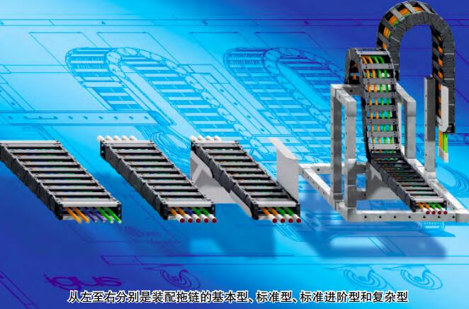 “裝配拖鏈”意為量身定制的預裝配拖鏈供能系統。裝配拖鏈產品現已有了新的分類:基本型、標準型、標準進階型和復雜型。作為運動塑料專家,igus在裝配拖鏈的產品大類下提供了四種選擇。從簡單的拖鏈-電纜的組合,到全套預裝配的拖鏈系統,客戶可以向igus采購所需要的全部產品和配套服務。對客戶而言,這一服務不但方便,還能節省運營成本。