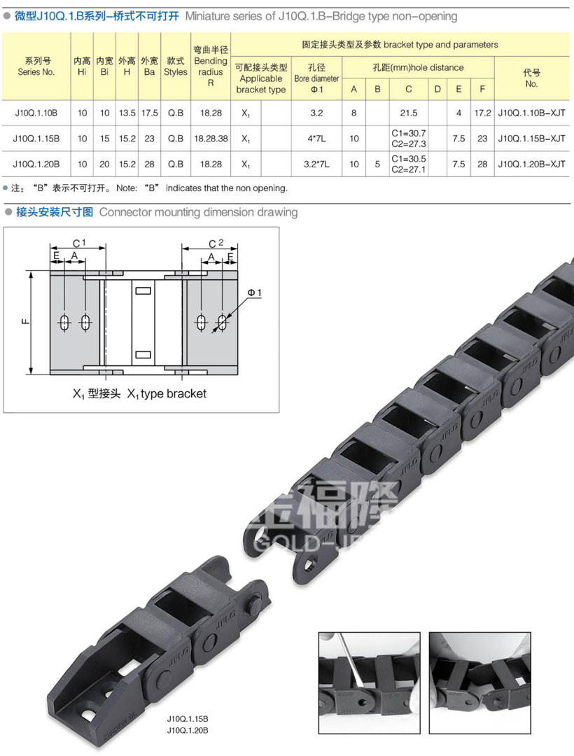 • 微型J10BF.1.B系列-半封閉不可打開拖鏈